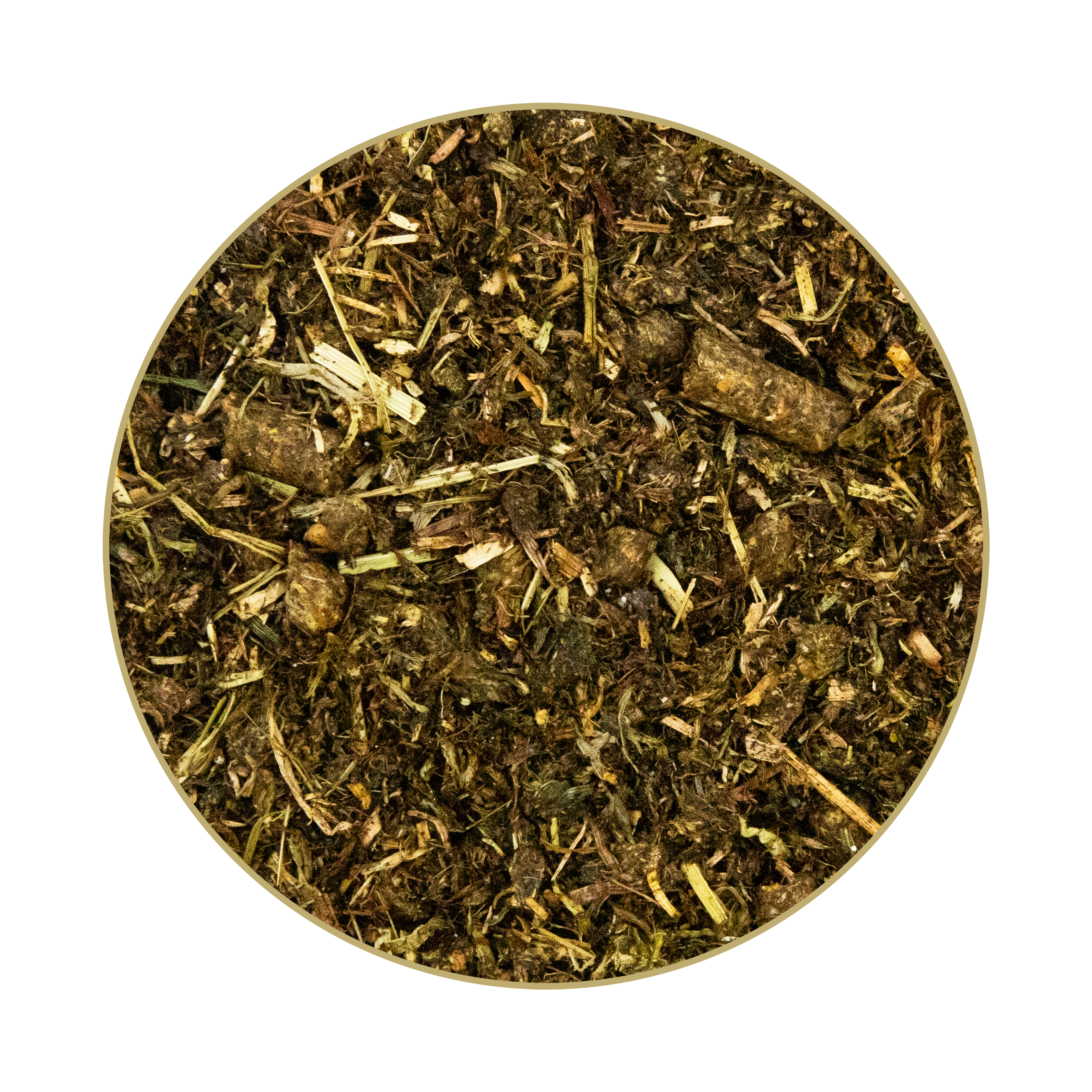 Kernkraft stellt ein innovatives Futter der neuen Futtermittelgeneration dar. Aufgeschlossene, energieliefernde Getreideflocken werden kombiniert mit strukturreichen Gräser- und Luzernehäckseln sowie vitalstoffreichen Ölsaaten. Komplettiert wird die Zusammensetzung von Keimlingen, präbiotischer Bierhefe und reichhaltigen Kräutern. Kernkraft – ganzheitliche Kraft von innen heraus.